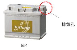 * バッテリー端子を手前にした状態で、右側に排気孔があります。(図4参照)
