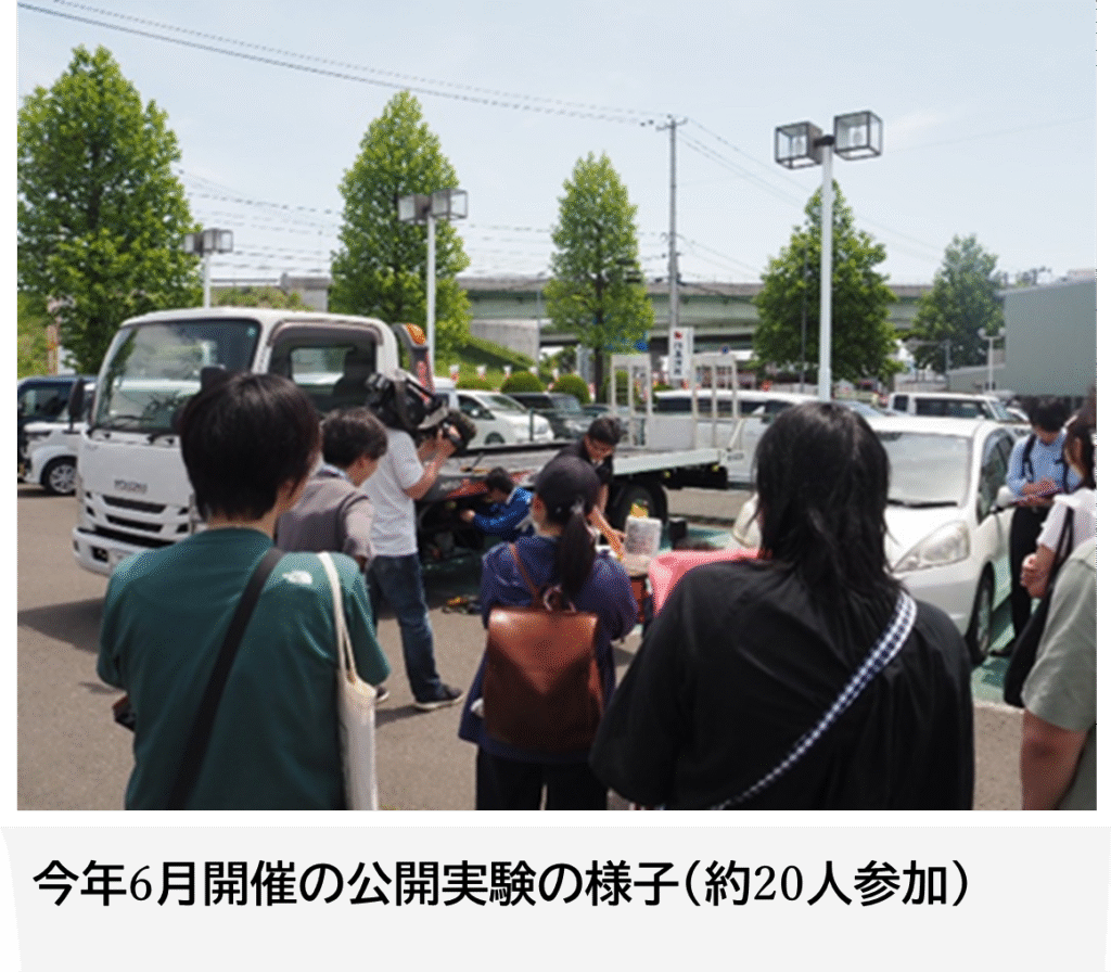 これまでエナジーウィズは、バッテリーメーカーとして、「電源ドナー」を提供する株式会社イーコース(東京都中央区、代表:菊竹玉記)が主催する給電デモンストレーションなどに参加してきました。実際の給電拠点である物流倉庫や中古車販売店に、地域の医療的ケア児者や、その支援をする方をお招きし、バッテリーを搭載したトラックや乗用車からどの程度給電できるかの公開実験を行っています。今後も、新たな給電拠点などで公開実験を行い、地元に住む方々に給電場所の存在や、その必要性についての広報に努めていきます。