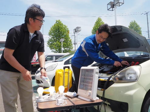 災害・停電時は自動車バッテリーを非常用電源に!給電デモンストレーション実施