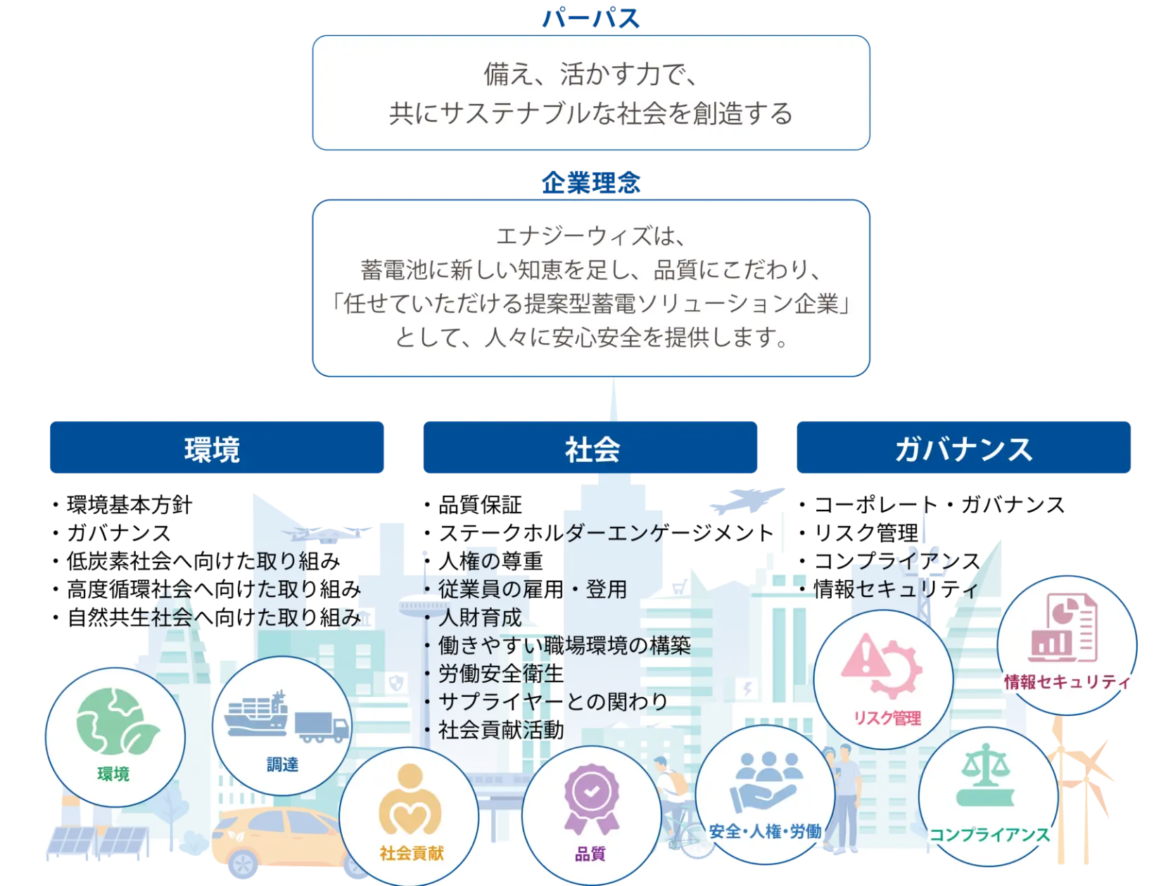 エナジーウィズは、「蓄電技術を活かし、エネルギーとともにサステナブルな未来を創る」企業として、