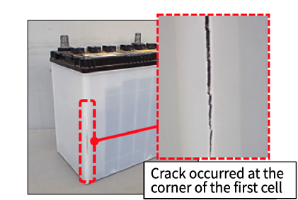 As shown in the diagram, when the water content in the electrolyte freezes and expands, the battery case (the container section) may crack.