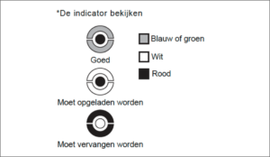 B tipa akumulatoru elektrolīta līmeni nevar pārbaudīt no sāniem, tāpēc pārbaudei izmantojiet indikatoru. Ja B tipa akumulatora indikators norāda, ka akumulators ir jānomaina, nekavējoties nomainiet akumulatoru, jo ūdeni nevar pievienot. Ja indikatoru nevar pārbaudīt, nomainiet akumulatoru vai sazinieties ar veikalu, kurā iegādājāties akumulatoru.