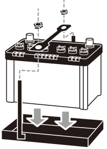 - When connecting the vehicle’s cable terminals to the battery terminals, tighten the nuts securely.