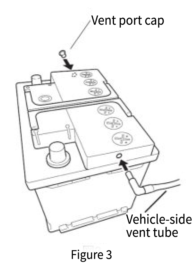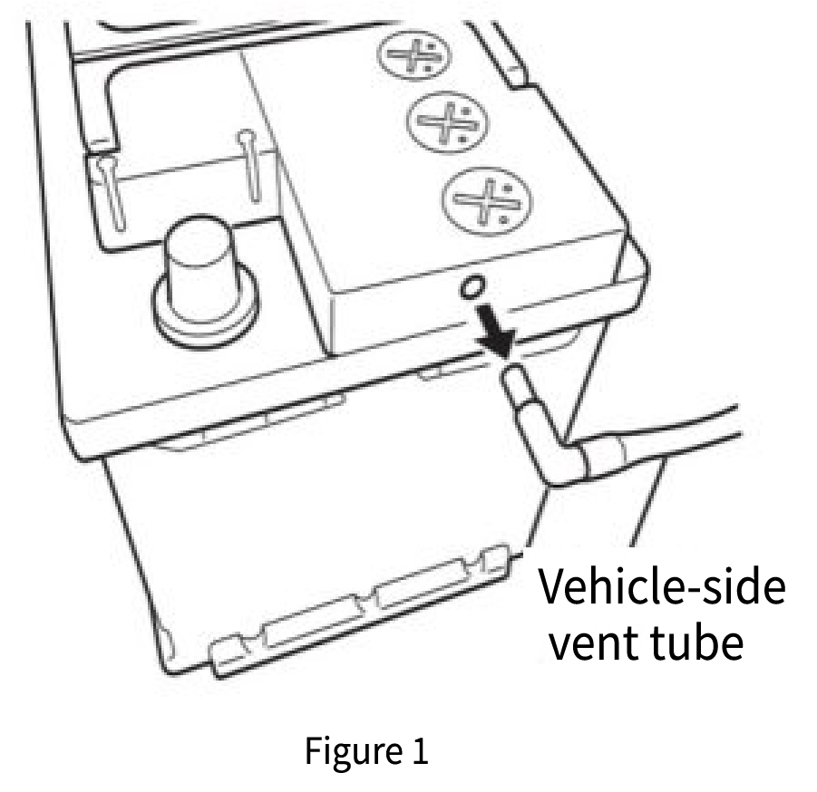 - If a vent tube from the vehicle is connected, remove the vent tube from the battery’s vent hole. (Figure 1)