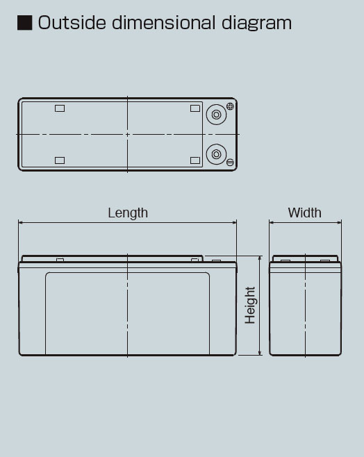 • Available as 12 V or 24 V monoblock batteries, adopting a top-flat design and nut-insert terminals, which significantly reduces installation and connection work. In addition, the terminals are arranged on the front side, making inspection work easy.