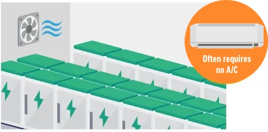 Stable operation at ambient temperature reduces the need for HVAC equipment, lowering both electricity and maintenance costs.