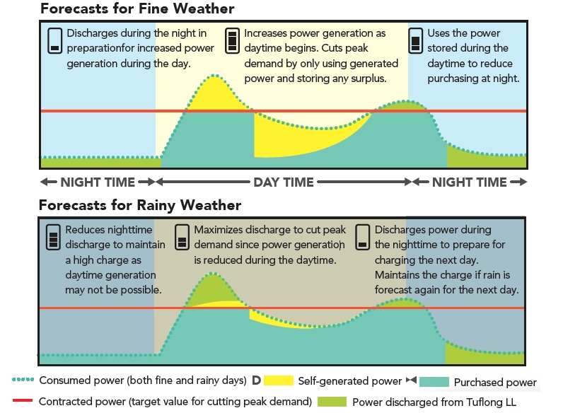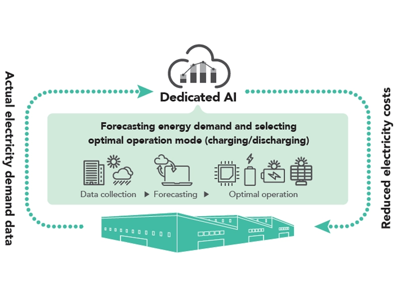 By storing excess electricity and supplying it during shortages, the system reduces both basic and usage-based electricity charges. Through proprietary simulations and demand-forecasting models, it operates efficiently in coordination with solar and wind power, automatically adapting to weather fluctuations.