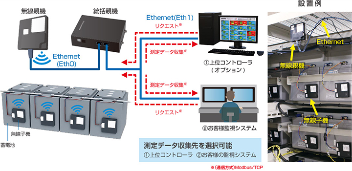 監視対象2V電池6V電池/12V電池2V電池:3直列または4直列に対し無線子機1台
