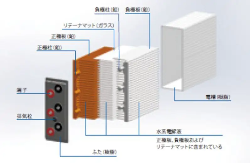 タフロングLLの電解液は水溶液系で、写真(水系電解液に火を近づける実験)の通り、火を近づけても引火しにくい特性があります。物性上は鉛蓄電池で、可燃物を使っておらず、消防法上の危険物に該当しない素材で構成されています。そのため、発火・引火・延焼のリスクが極めて低く、住宅密集地や屋内、地下などでも安心して設置できます。