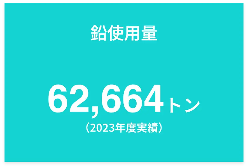 国内で鉛蓄電池を製造するために使用されている鉛の量は、約16万5千トン(2023年度)。エナジーウィズはこのうち4割近くを使用して、国内2工場で鉛蓄電池を作っています。